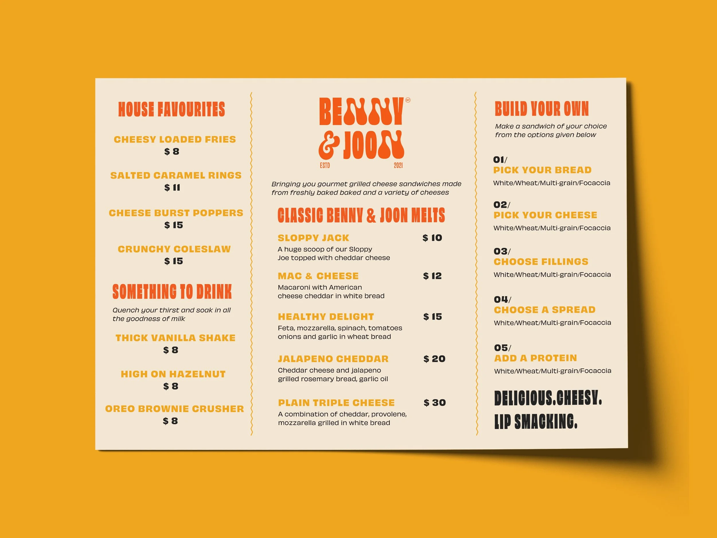 A gourmet grilled cheese sandwich brand inspired by the comfort and culture of cheese. The brand focuses on creating a rich, indulgent experience through high-quality ingredients and playful storytelling.