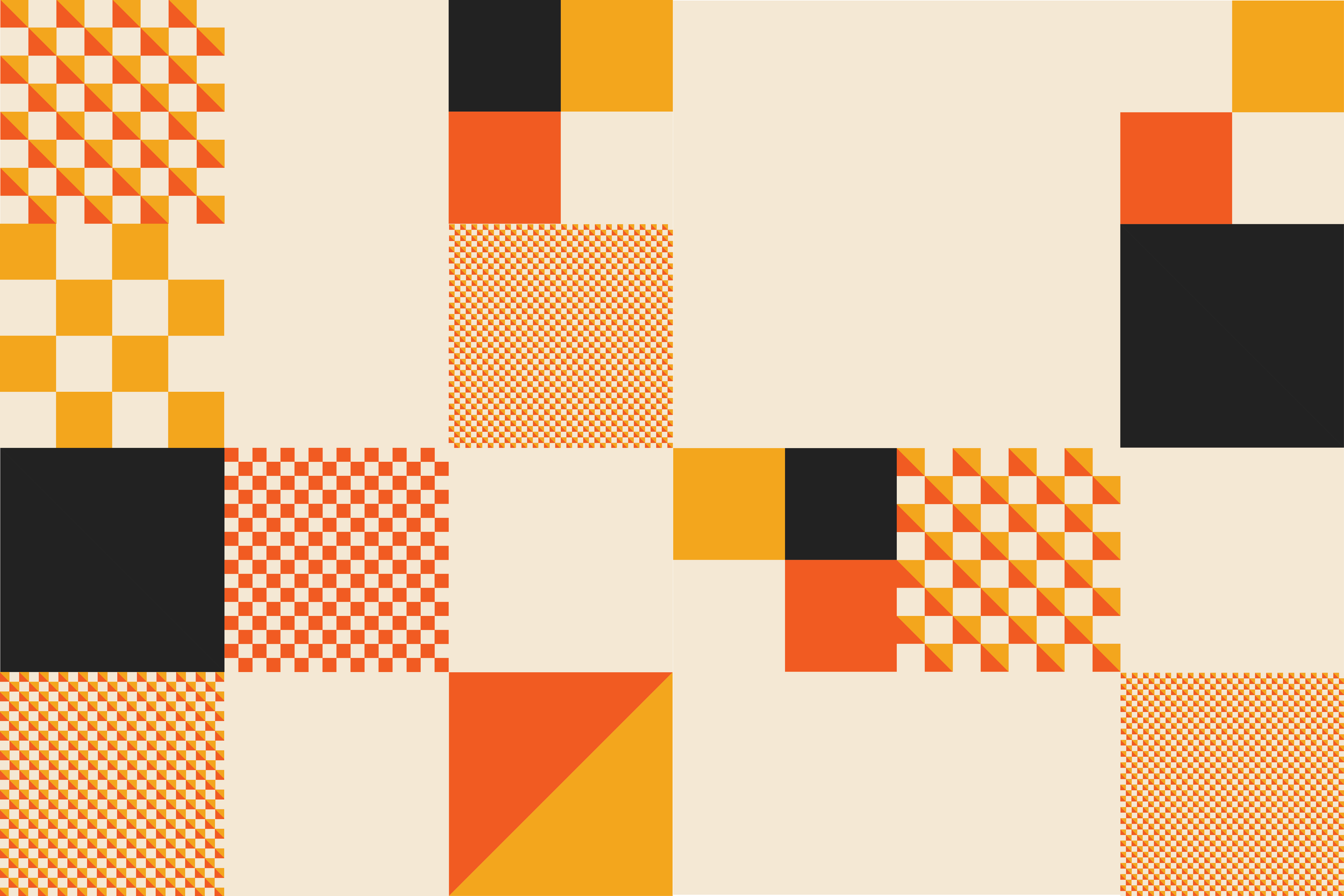 An experimental set of abstract patterns derived from the form of a sandwich, explored across varying scales, colours, and compositions. These patterns extend across packaging and brand collaterals, creating a versatile and expressive visual system.